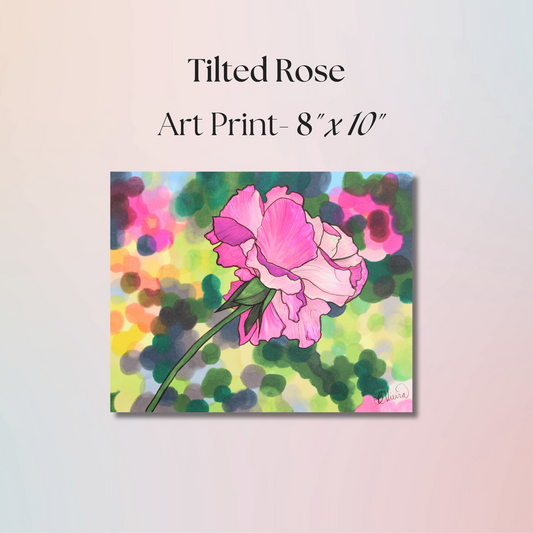 Tilted Rose Drawing - 8" x 10" Pink Marker Print