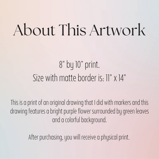 Natural Neon Drawing - 8" x 10" Purple Flower Marker Print