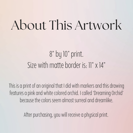 Dreaming Orchid Drawing - 8" x 10" Colorful Marker Print