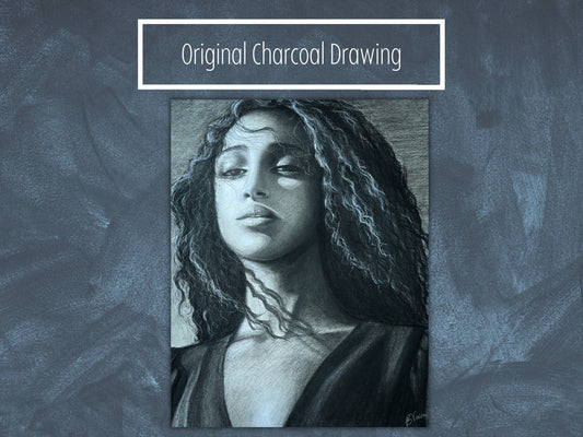 Original Fine Art Charcoal Drawing - 11" x 14" Mysterious Woman Portrait